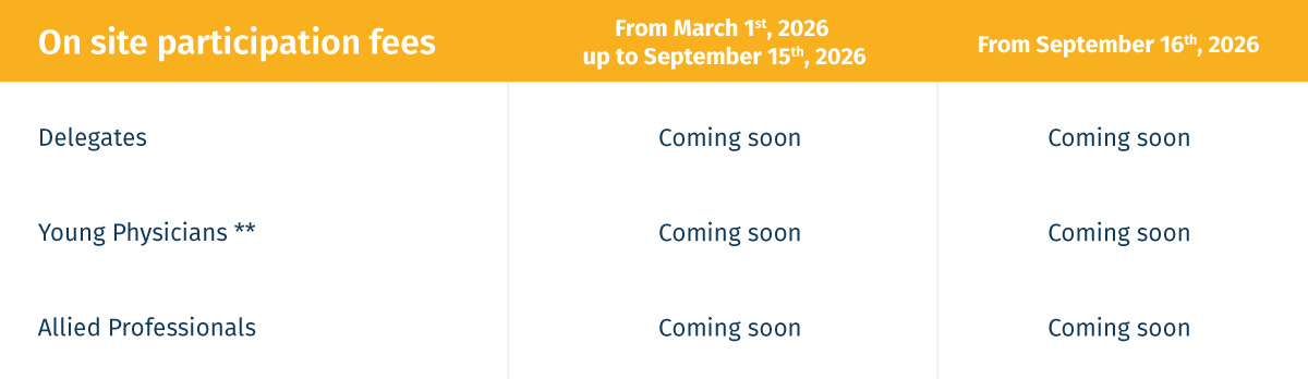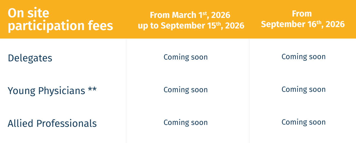 ** To be eligible to register as a Young Physician, applicants must be no older than 40 years old. After the registration process, it is mandatory to submit a copy of your ID card or passport as proof of age to the following e-mail address: VAregistrations@summeet.it